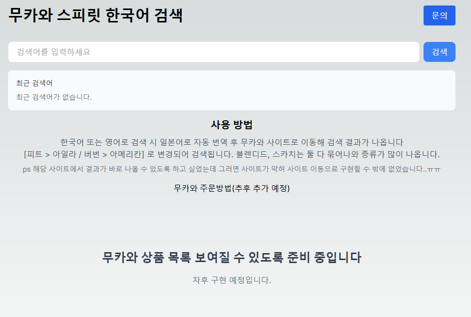 서비스 링크(무카와 검색 사이트) : https://mukawa.vercel.app/